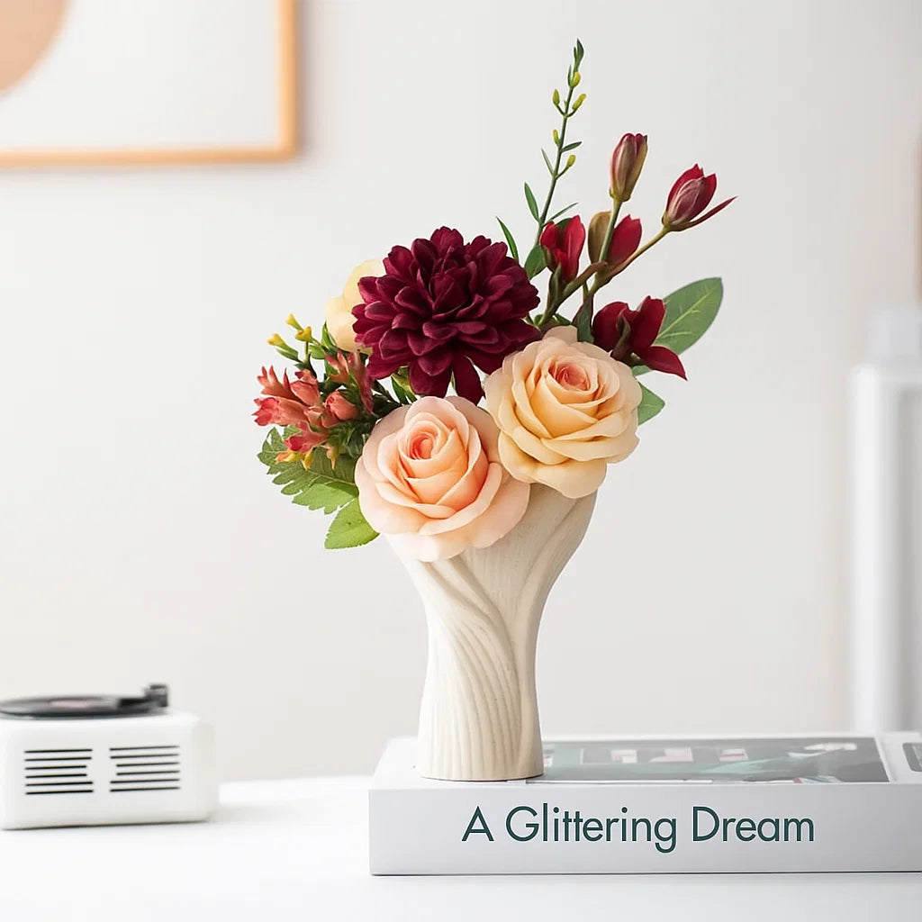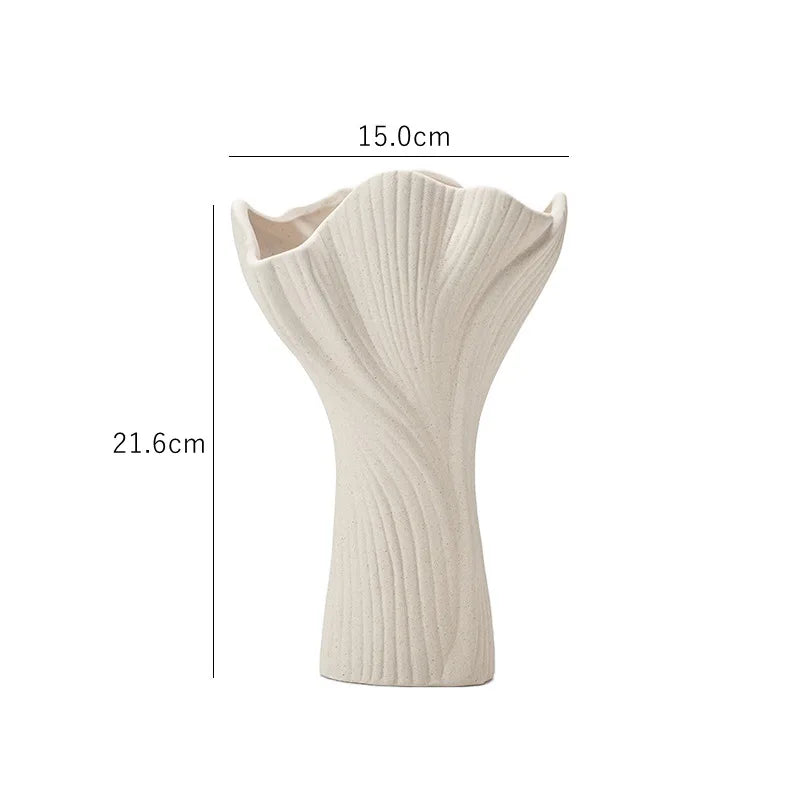 The Lotos ceramic vase impresses with its organic shape, reminiscent of opened petals. The fine texture of the surface emphasizes the natural character and makes it a special eye-catcher – both with fresh flowers and as a decorative standalone piece.