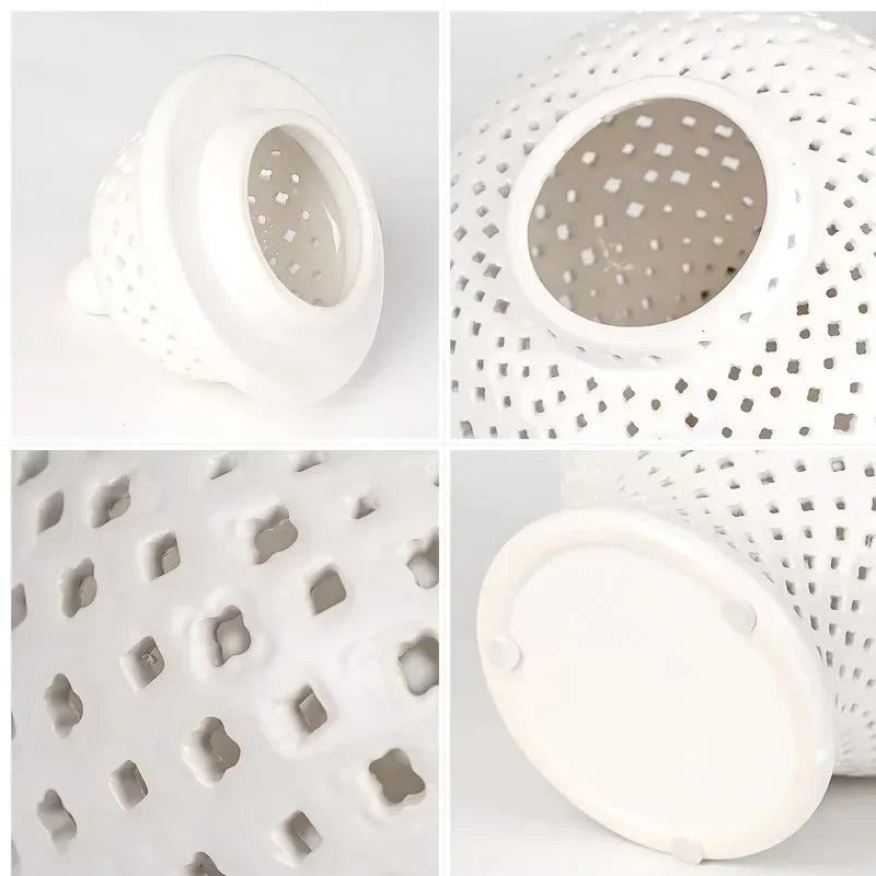 Une touche d'élégance et de calme : le vase en céramique Cléa fascine par sa structure finement perforée et la douce brillance de la céramique.
