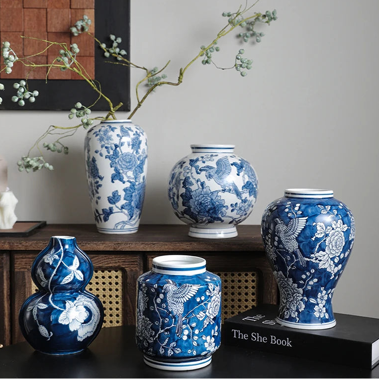 Les vases en céramique Collection Azure célèbrent la beauté intemporelle de la céramique bleu-blanc.