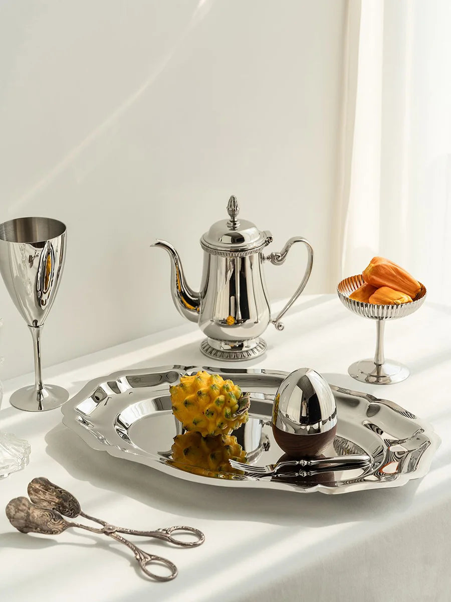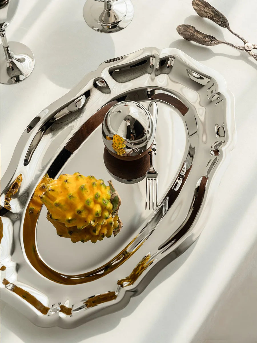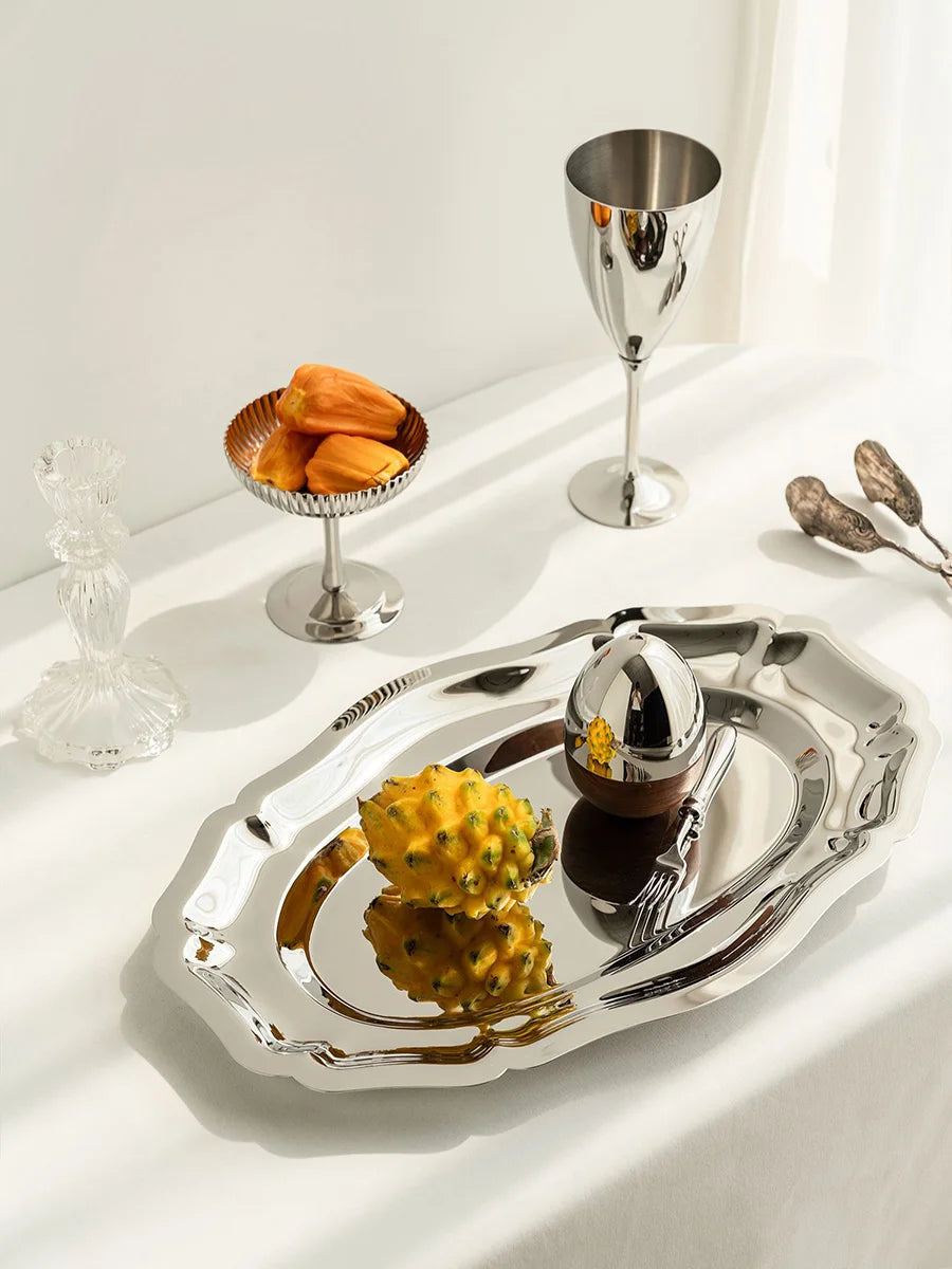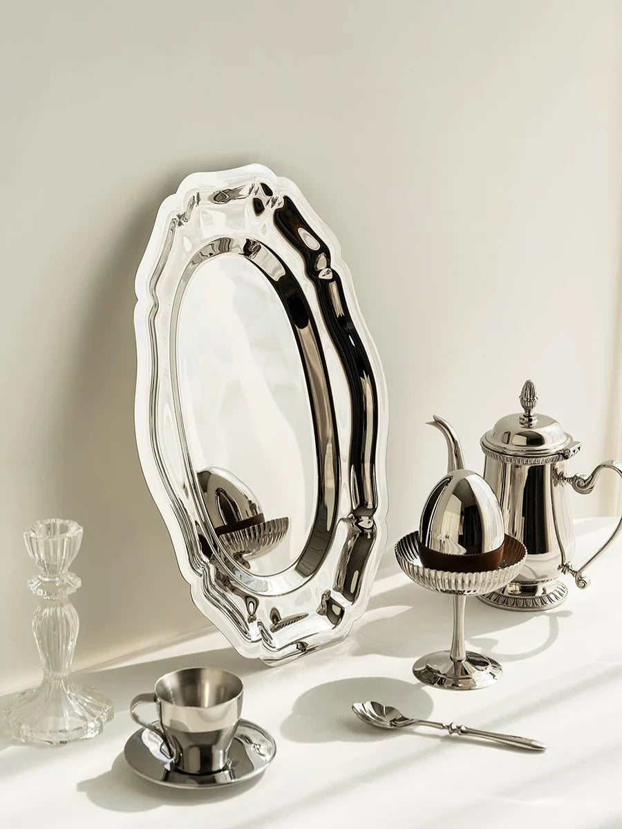 Il vassoio da portata Vintae fa parte dell'esclusiva Collection MIRRA di Mary Home Store – una linea che celebra la brillantezza del metallo, le forme pulite e la bellezza silenziosa del design moderno.