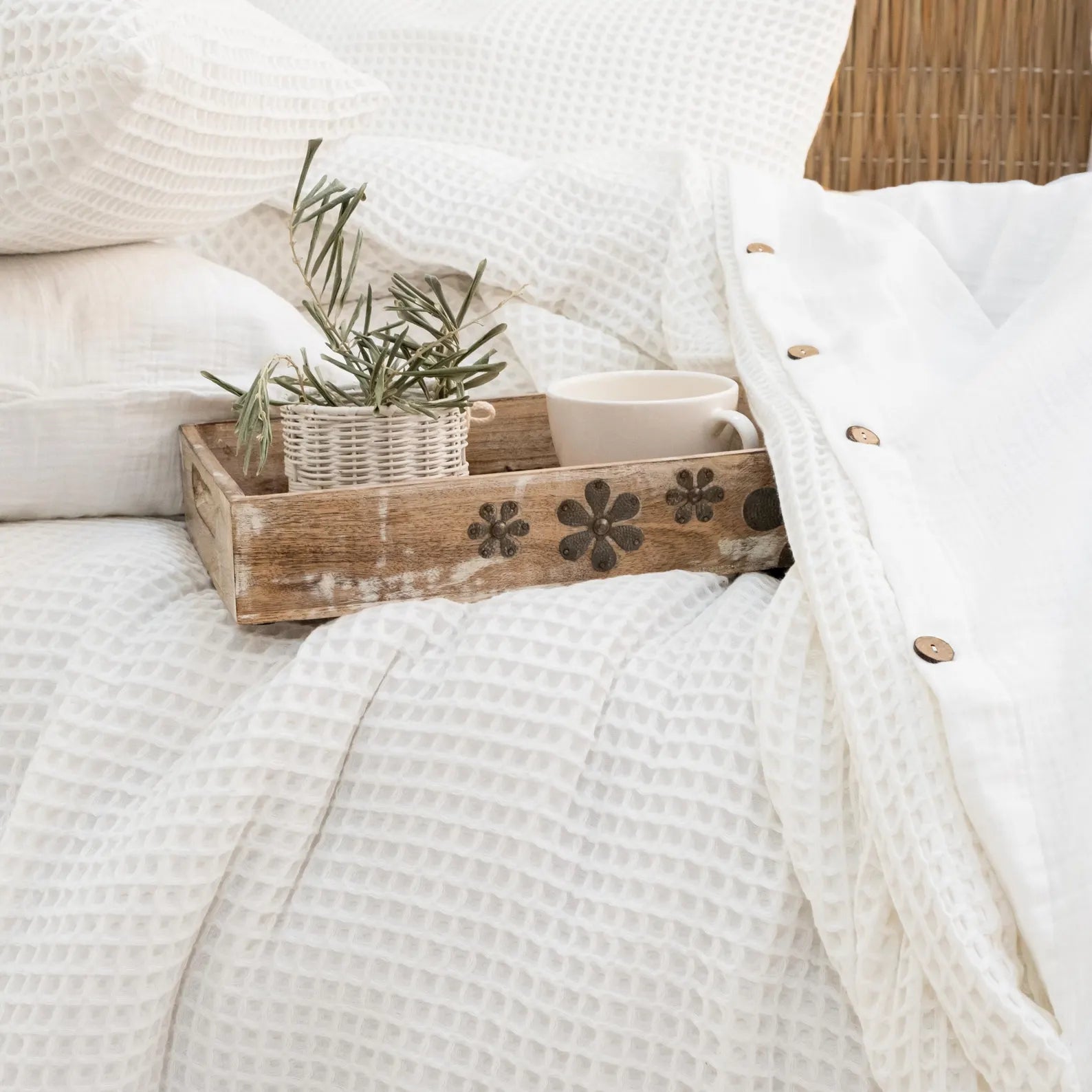 Erleben Sie die besondere Qualität türkischer Bio-Baumwolle. Dieses Waffel-Duvetbezug Set vereint minimalistisches Design mit zertifizierten Materialien und schafft eine ruhige, elegante Atmosphäre in Ihrem Schlafzimmer.