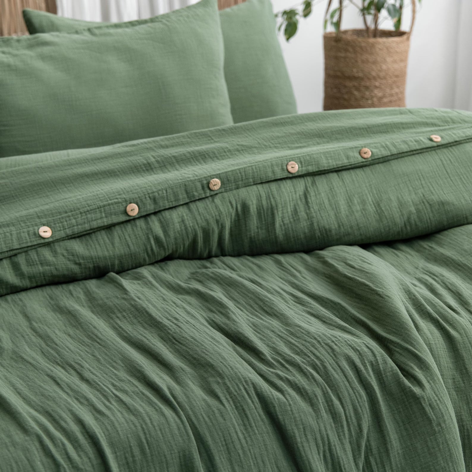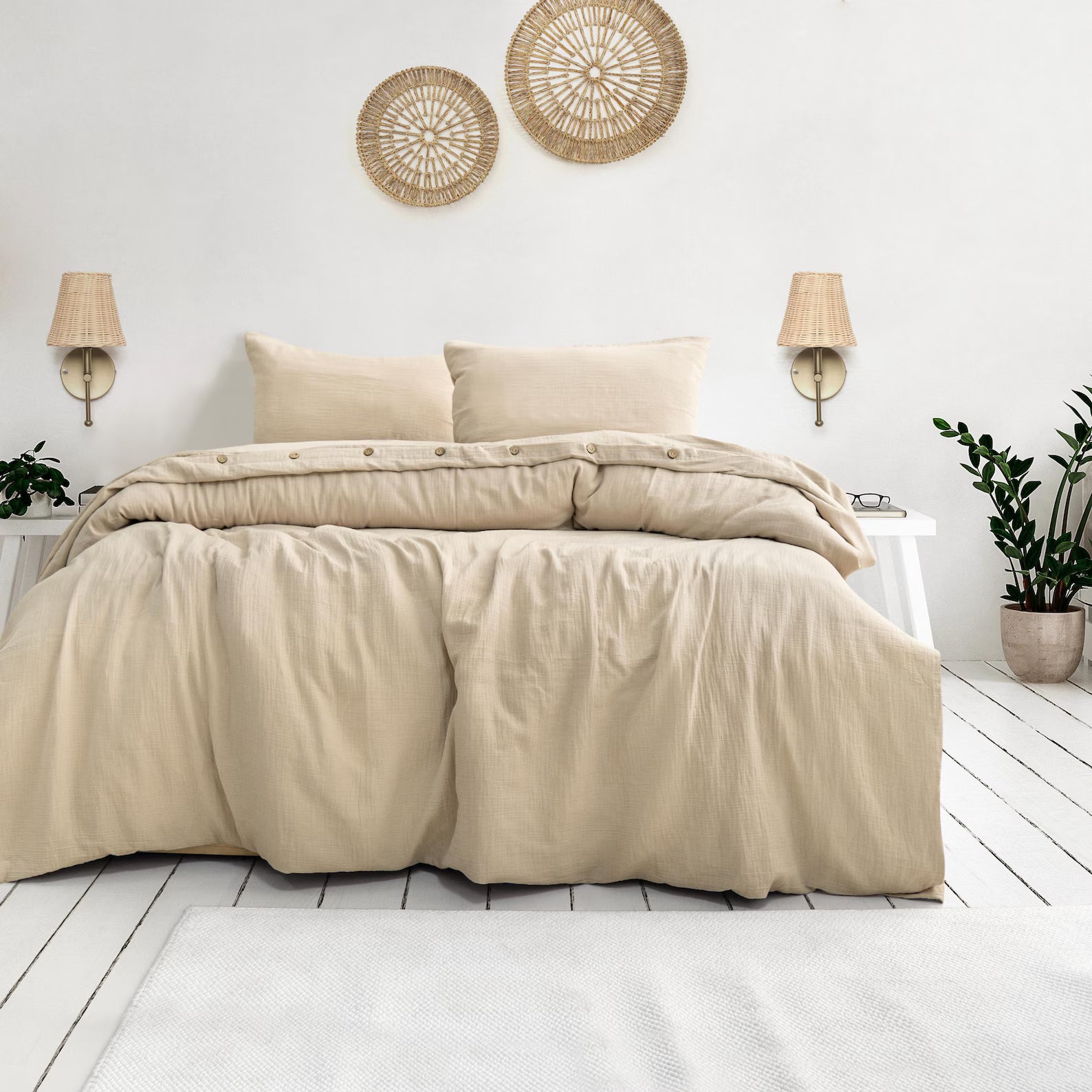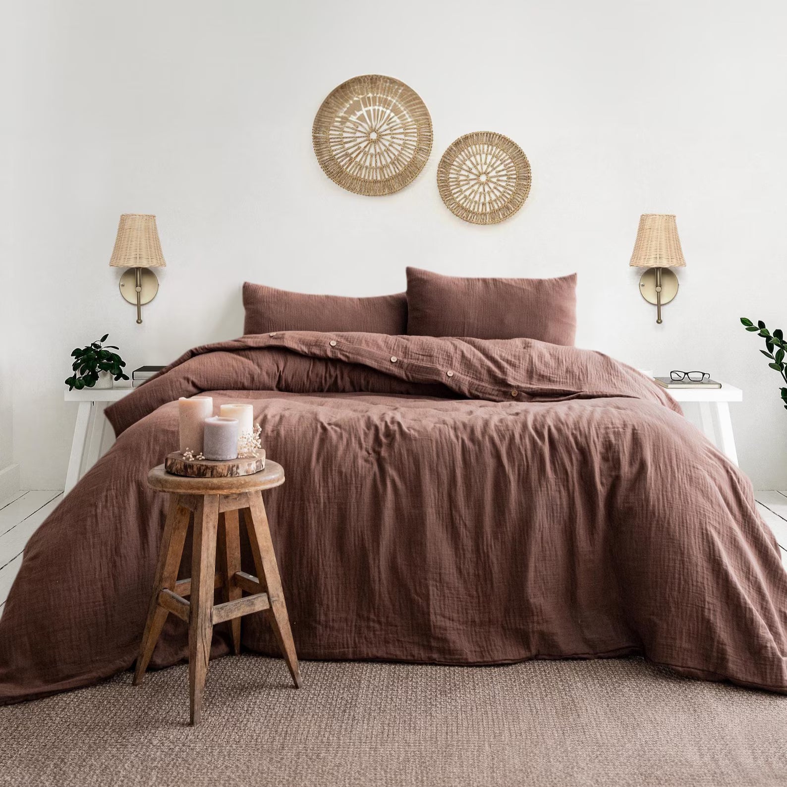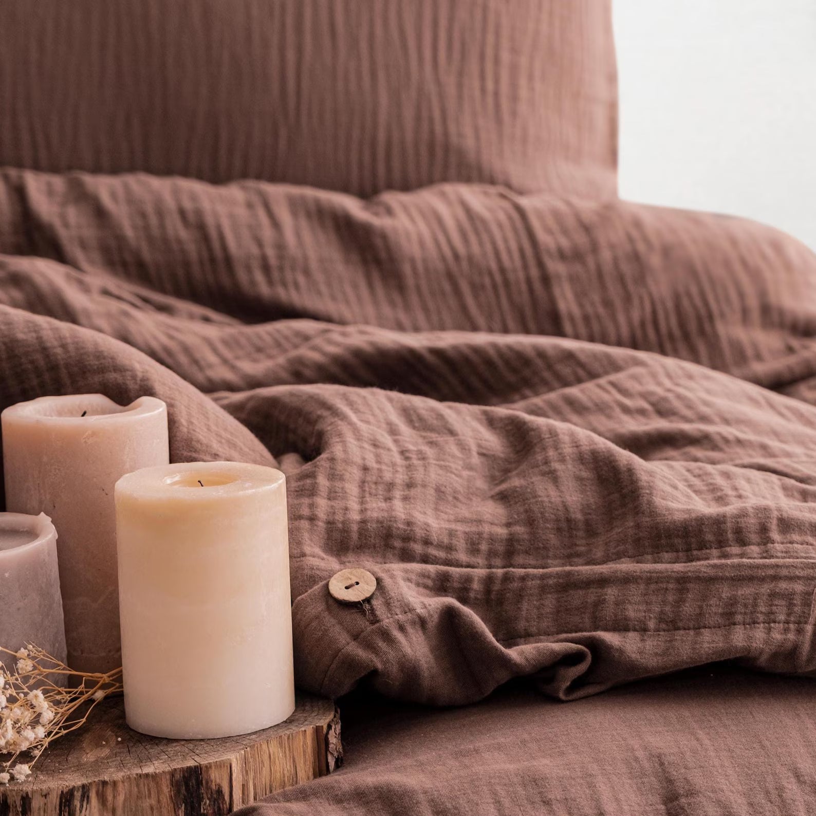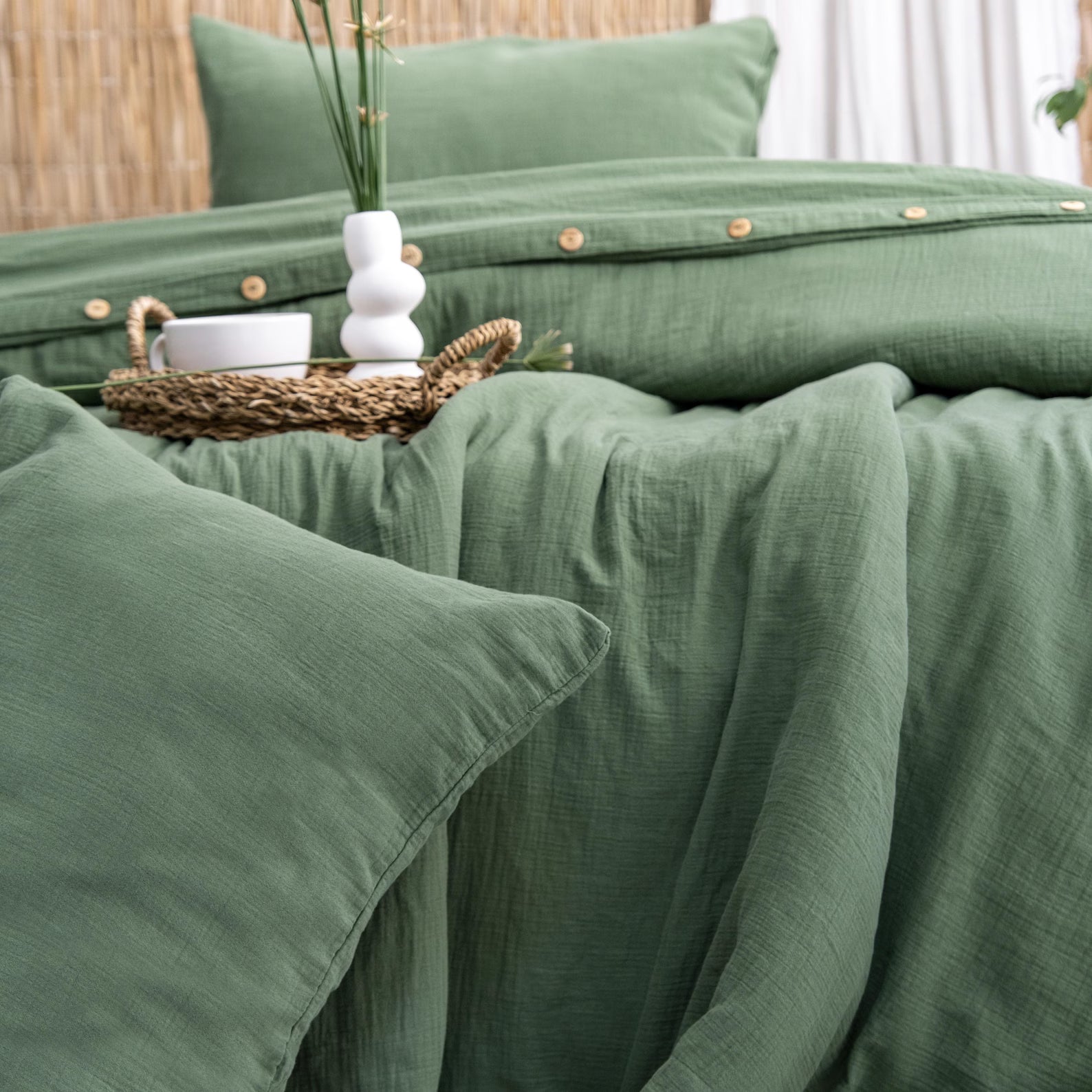 Erleben Sie die aussergewöhnliche Weichheit von Musselin aus türkischer Bio-Baumwolle. Dieses Duvetbezug Set vereint eine luftige, mehrlagige Struktur mit zeitloser Ästhetik und schafft eine ruhige, harmonische Atmosphäre in Ihrem Schlafzimmer.