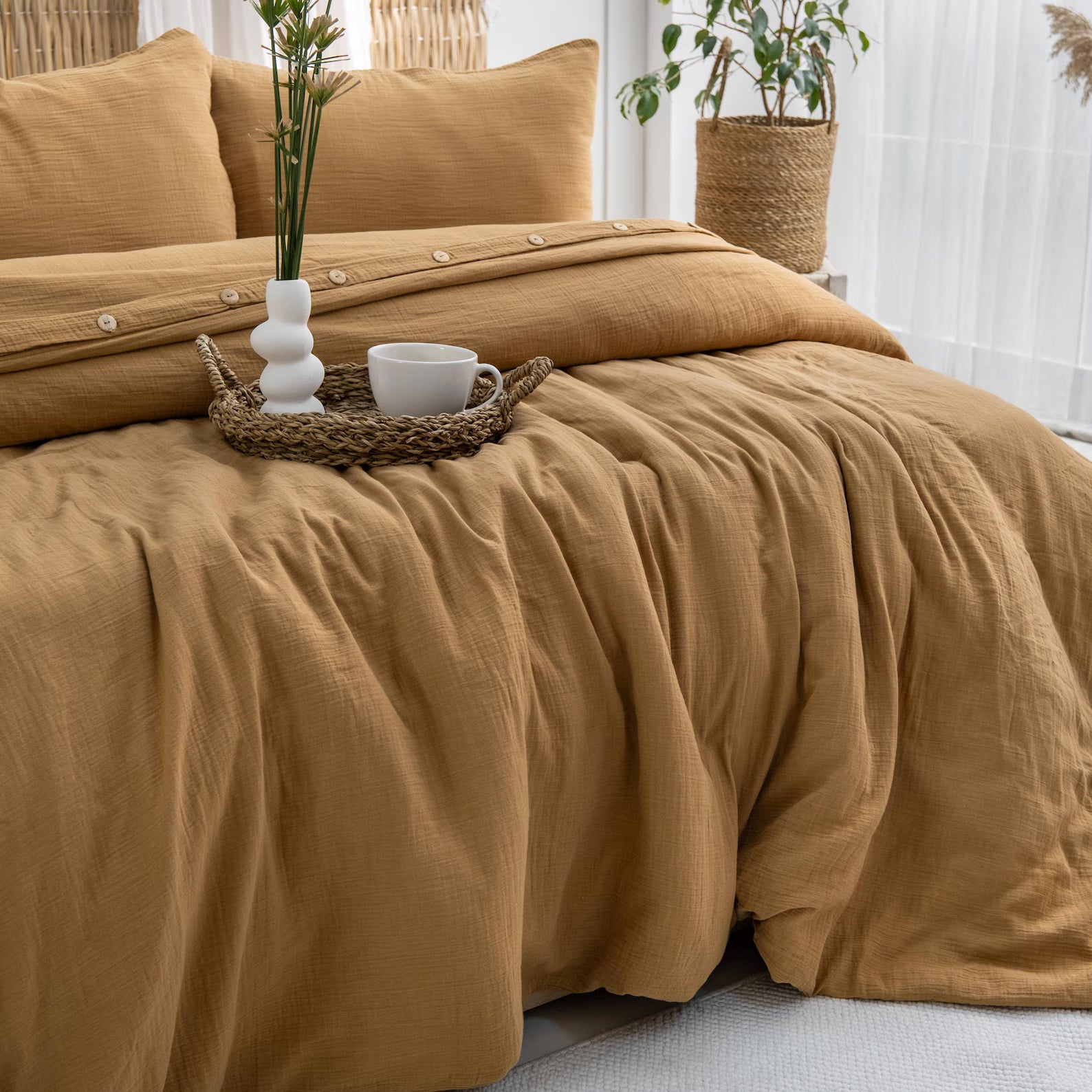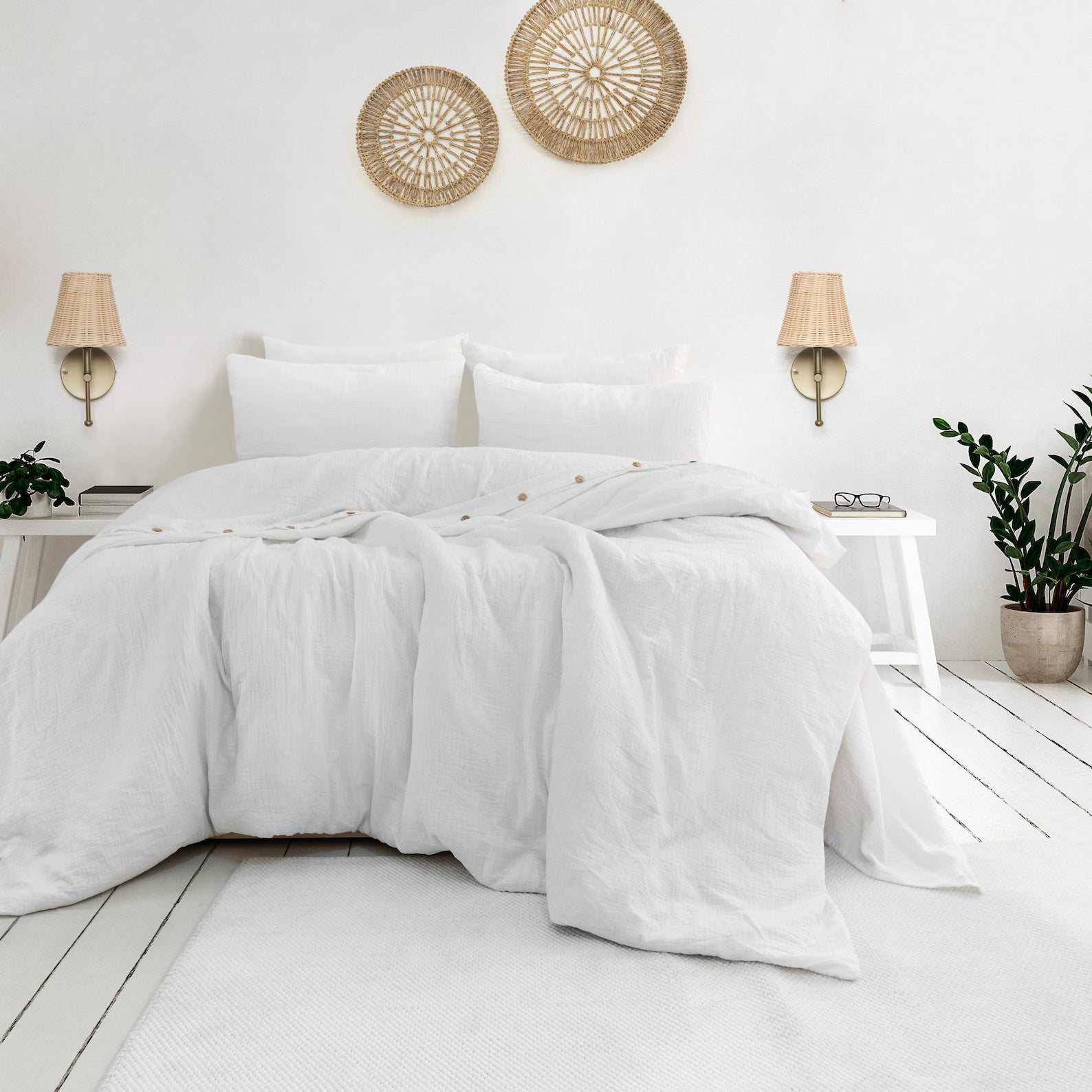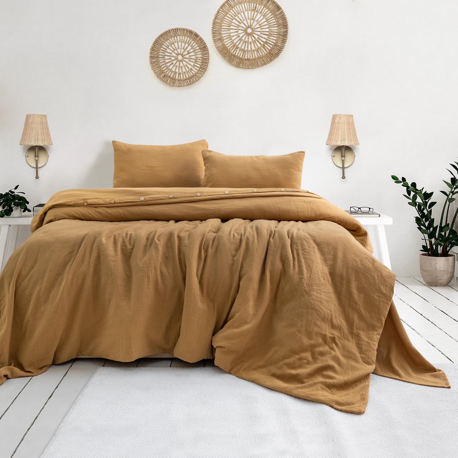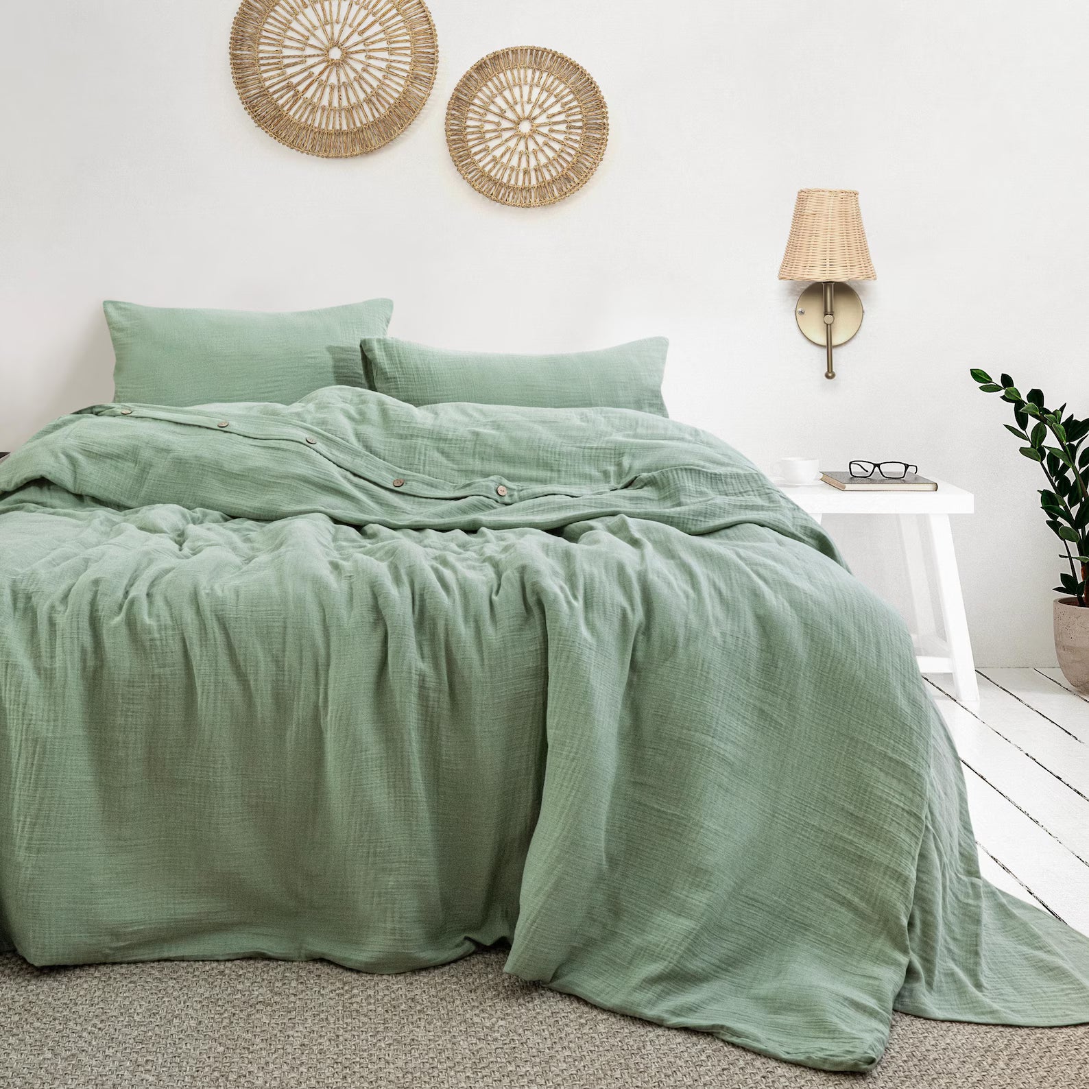 Erleben Sie die aussergewöhnliche Weichheit von Musselin aus türkischer Bio-Baumwolle. Dieses Duvetbezug Set vereint eine luftige, mehrlagige Struktur mit zeitloser Ästhetik und schafft eine ruhige, harmonische Atmosphäre in Ihrem Schlafzimmer.