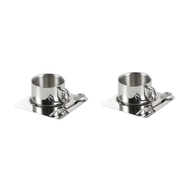 Tasse mit Unterteller und Löffel aus Edelstahl Bryn