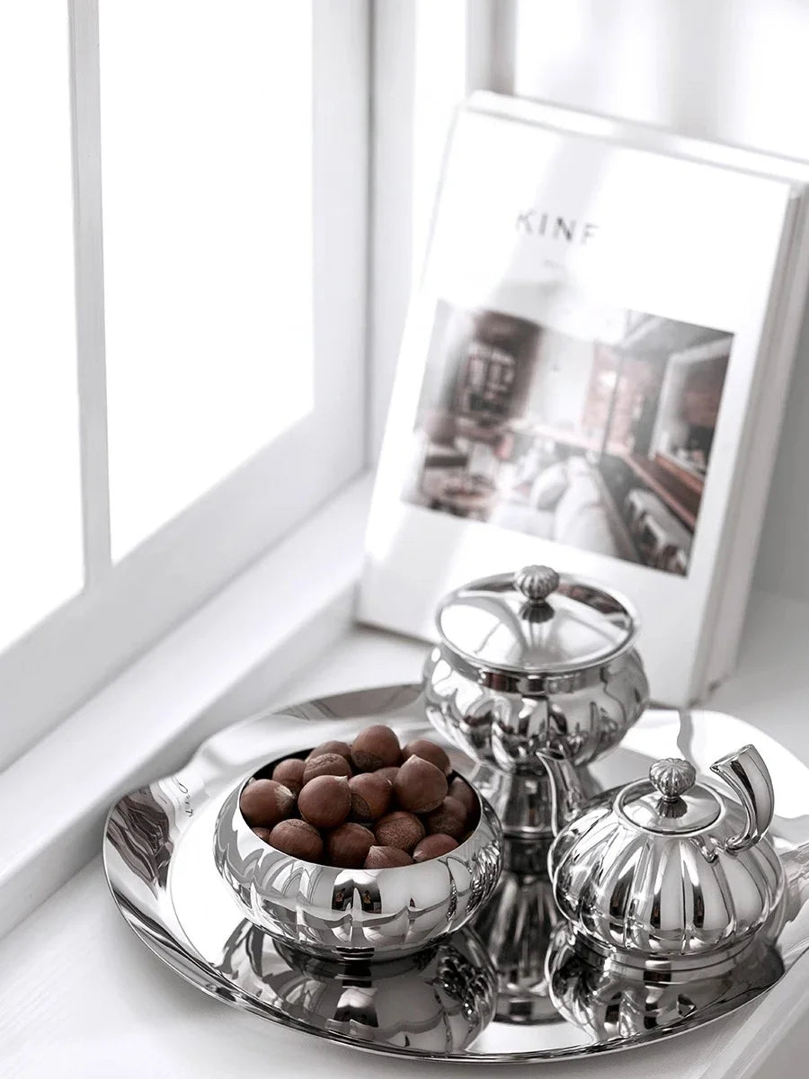 Das Schalen-Set Emera vereint Funktionalität mit raffinierter Eleganz. Hergestellt aus hochwertigem Edelstahl mit handpolierter, spiegelnder Oberfläche, bringen die beiden Schalen subtilen Glanz auf jede Tafel – ideal für Snacks, Früchte, Desserts oder kleine Beilagen.